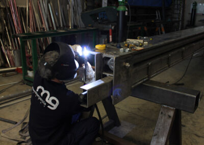 – Barra hidráulica fabricada en HEBx, forrada en chapa de acero inoxidable 316 mate.