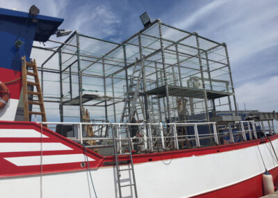 Una solución robusta para mantener las nansas organizadas y facilitar el trabajo en el pesquero «Madre Loreto». Ideal para mejorar la eficiencia durante las faenas de pesca.