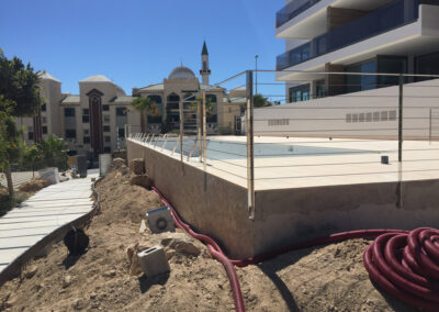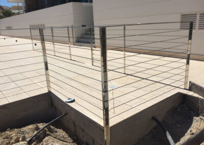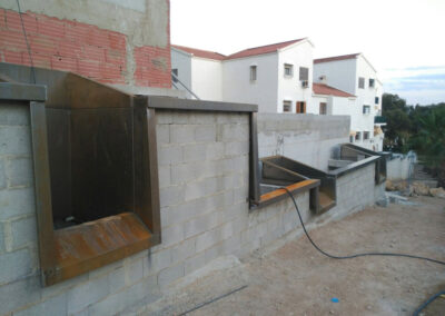 – Montaje: Tramo de barandilla piscina en hierro con sujeciones superiores y parte trasera en brezo