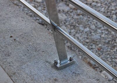 – Montaje en obra: Instalación mediante varillas roscadas y soldadura repasada, logrando una barandilla completamente lineal sin uniones visibles.