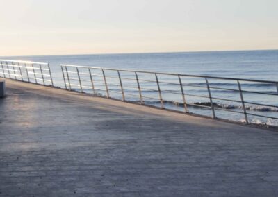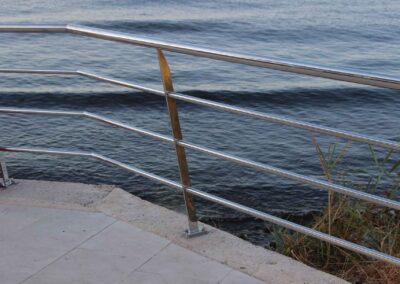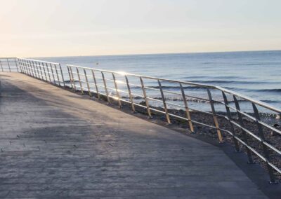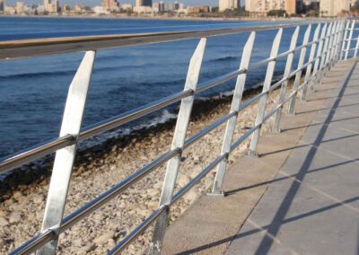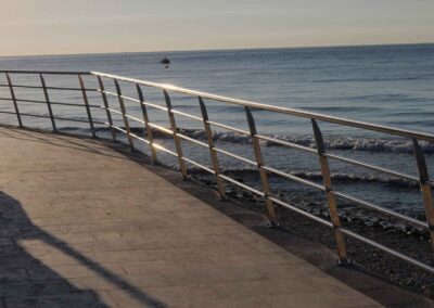 Se diseña un vallado para un paseo maritimo de 500 metros lineales, todo fabricado en acero inoxidable calidad 316 para soportar la corrosión, con acabados y materiales adecuados para ambientes salinos como paseos al mar.